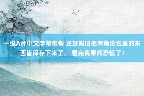 一级A片中文字幕蜜臀 还好照旧把海角论坛里的东西皆保存下来了, 看完我果然恐慌了!